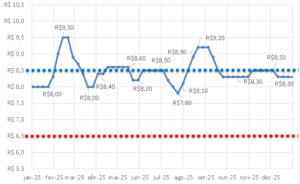 Preço de mercado em Minas Gerais em 2025.